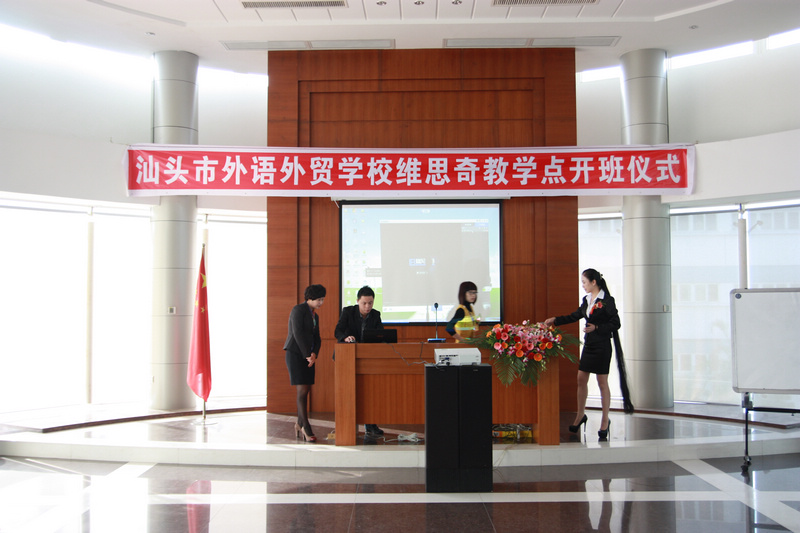 20131123上午900,我校在金园工业区广东维思奇食品有限公司举行“汕头外语外贸学校维思奇教学点”开班仪式,我校陈树耀校长、陈启琛副校长、维思奇公司洪耀文总经理、林英彦副总经理及有关嘉宾出席仪式,陈树耀校长、林英彦副总经理分别代表学校和企业在仪式上讲话,强调校企合作的积极意义,要求学员们珍惜机会、认真学习,努力提高文化素养和工作能力,预祝校企合作教育越办越好。