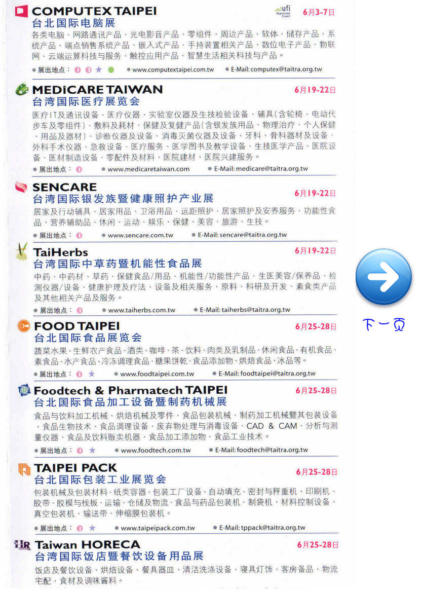 「台湾贸易中心」又名「台北世界贸易中心」为台湾最重要贸易推广机构,以协助业者拓展对外贸易为设立宗旨。目前,该中心除台北总部外,另设有新竹、台中、台南及高雄等4个办事处和遍布全球各地近60个海外办事处。常年在台主办各类专业性展会,为企业开拓台湾市场搭建平台。