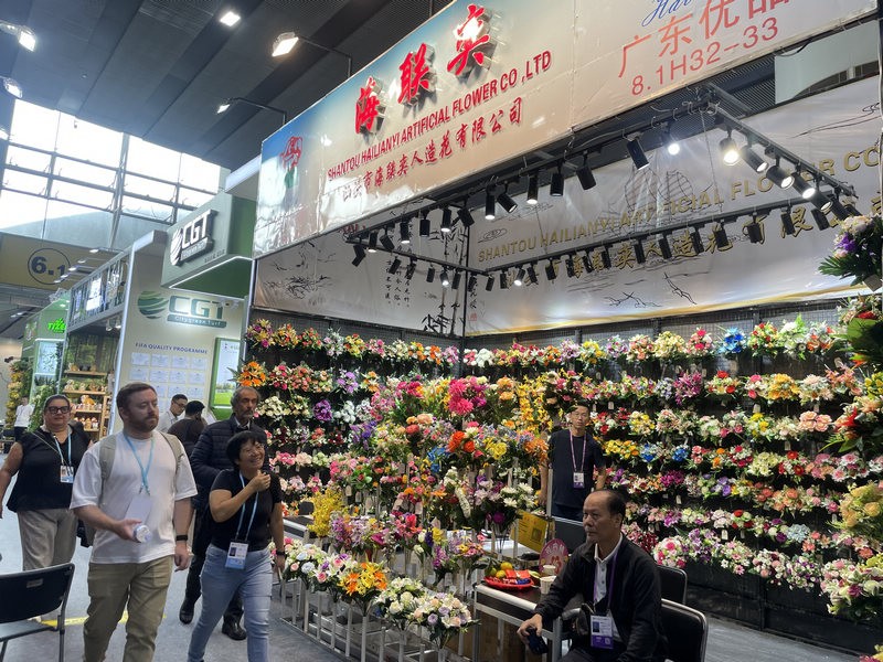 在园林展区,商会走访了广东新正芳能源科技有限公司、汕头市泓粤贸易有限公司、汕头市达辉盛工艺实业有限公司等,了解到本次展会大家纷纷携带最新设计的产品参展,在传统人造花的基础上很多企业也进行了改良创新,让产品的着色和造型更加逼真。