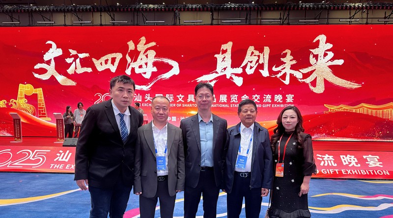 值得关注的是,同期在 6 号馆启幕的 2025 汕头国际文具礼品展以 “一站式供应链,赋能全球创意” 为核心主题,集中展示书写工具、智能教育设备、创意文创等全品类产品,汇聚 2000 余家优质品牌及上下游企业。展会同步举办亚太文具协会联盟年会,吸引亚太地区 20 个国家的产业代表及全球 44 个国家和地区的采购商参与,并精准承接广交会国际客商资源,助力本土企业对接国际市场需求。当晚,邱志宏会长、王枫秘书长受邀出席文具礼品展交流晚宴,与文具行业精英围绕供应链协同、国际市场对接等议题深入探讨,充分发挥商会桥梁纽带作用,助力会员企业对接全产业链资源。