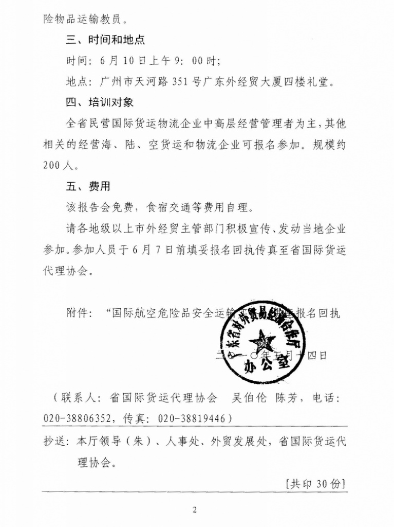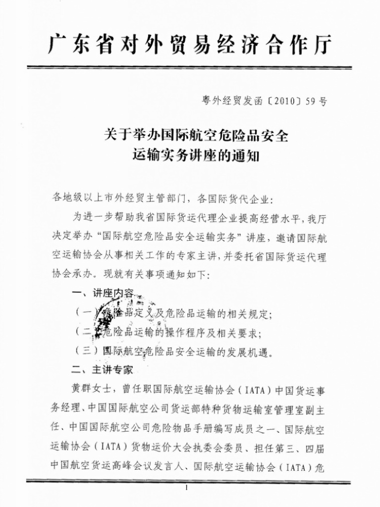 关于举办国际航空危险品安全运输实务讲座的通知