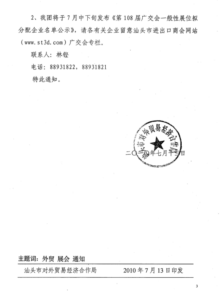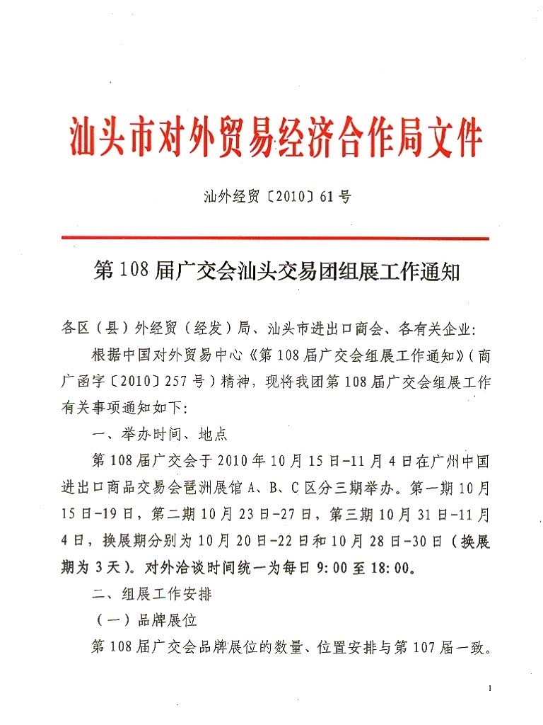 第108届广交会汕头交易团组展工作通知