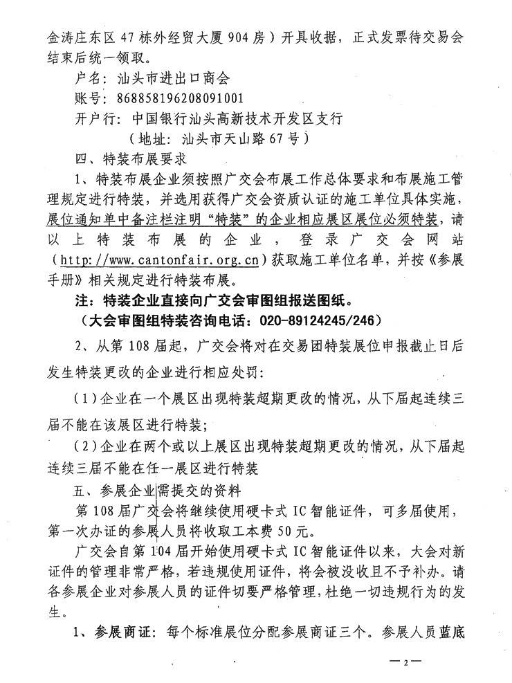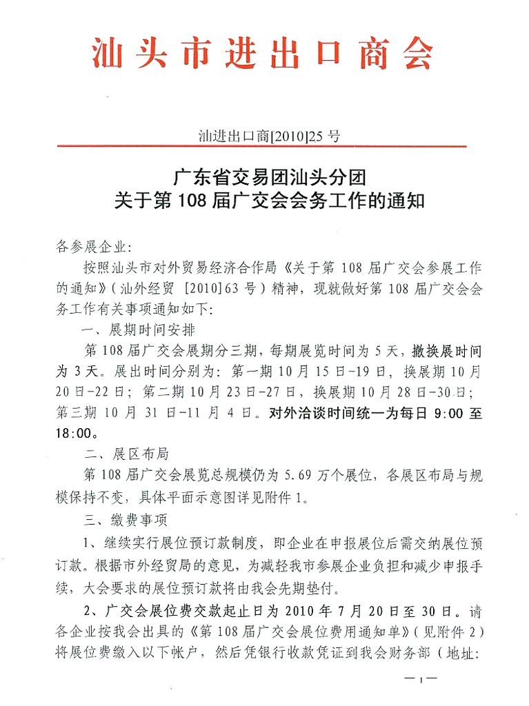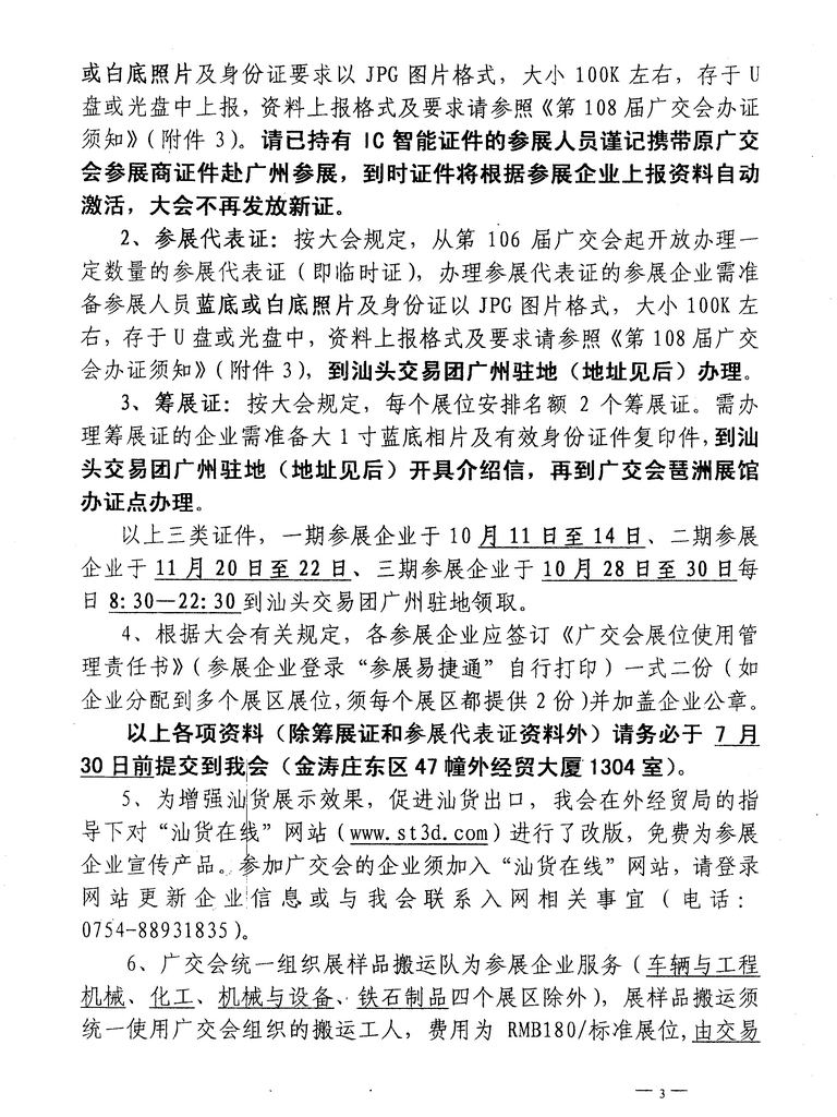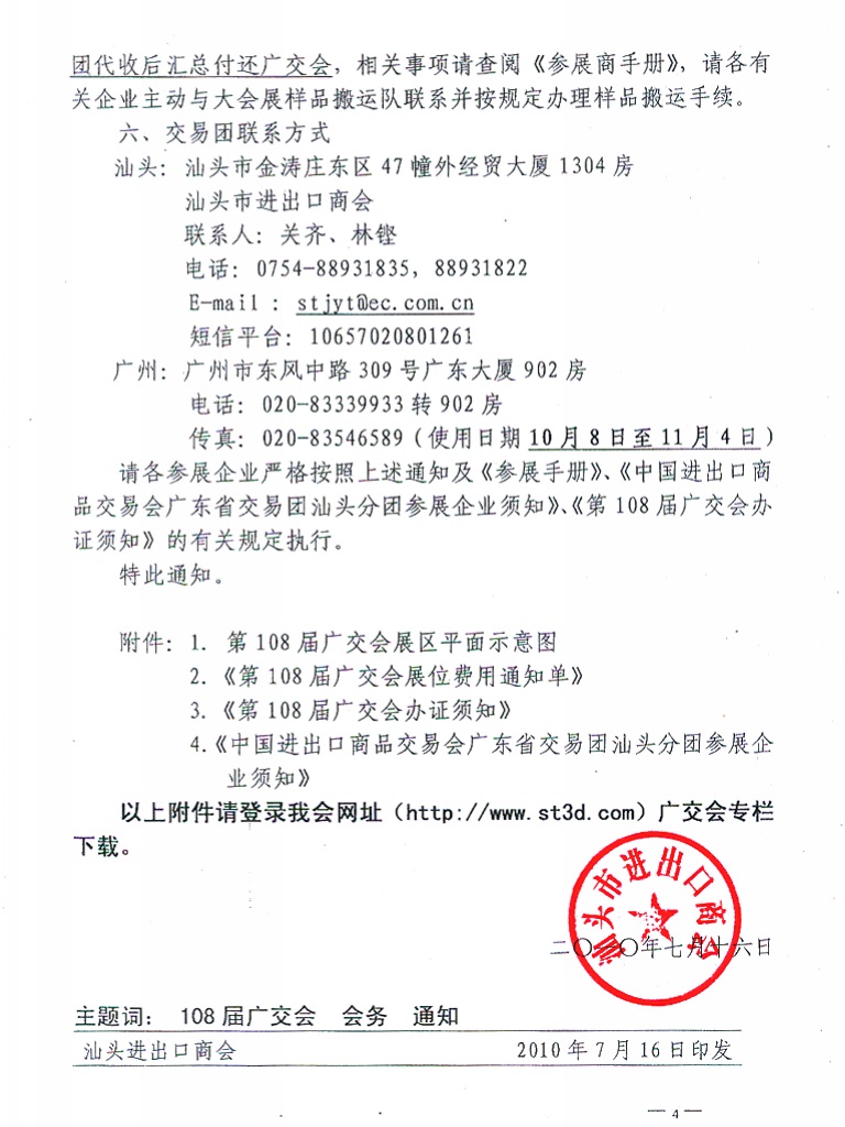 广东省交易团汕头分团关于第108届广交会会务工作的通知