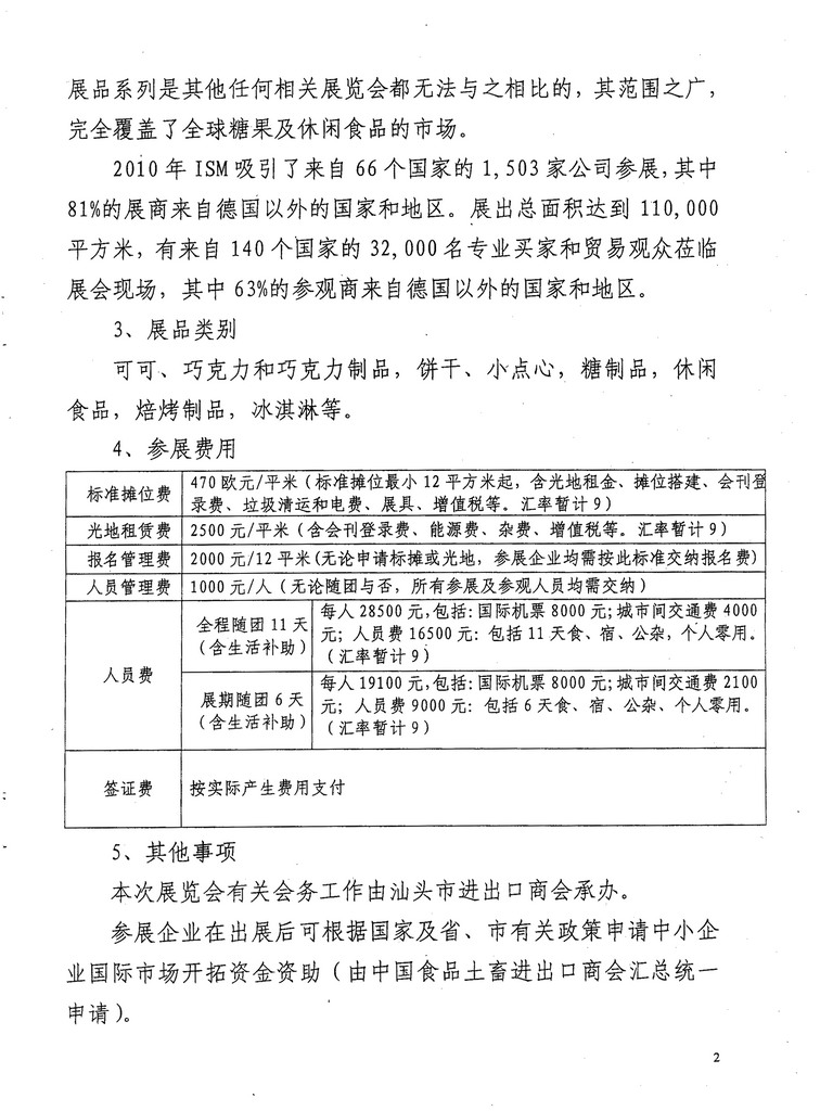 关于组织参加“2011年科隆国际糖果及休闲食品展览会”有关事项的通知