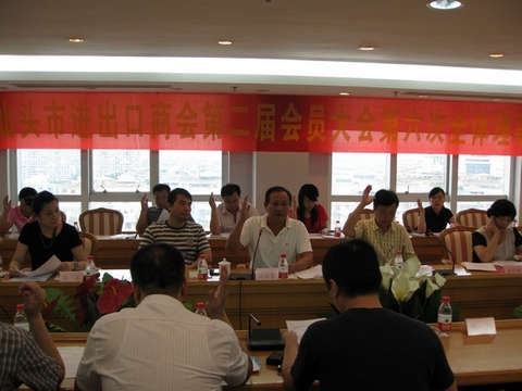 2010年8月6日下午3:30在市外经贸局12楼会议室我商会举行了第二届会员大会第六次全体理事会议,本次应出席理事代表54人,实际到会代表36人,会议审议有效。