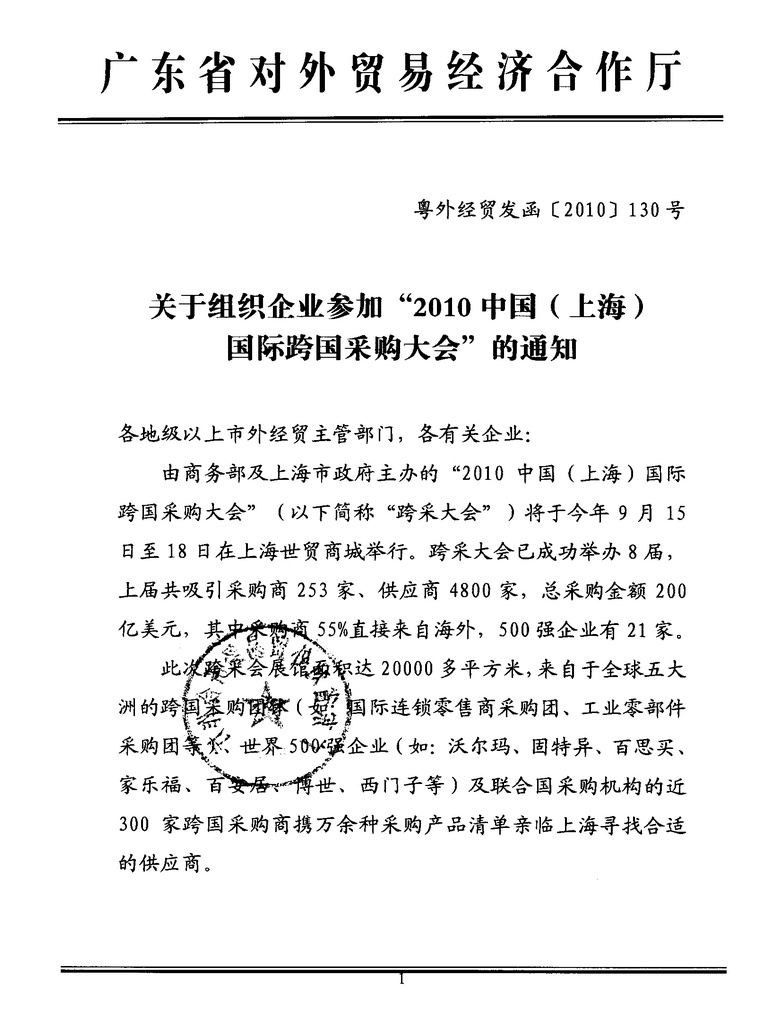 转发省外经贸厅“关于组织企业参加‘2010中国(上海)国际跨国采购大会’的通知”