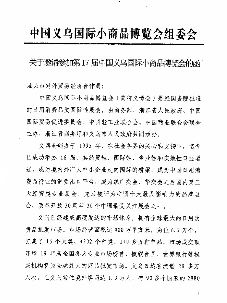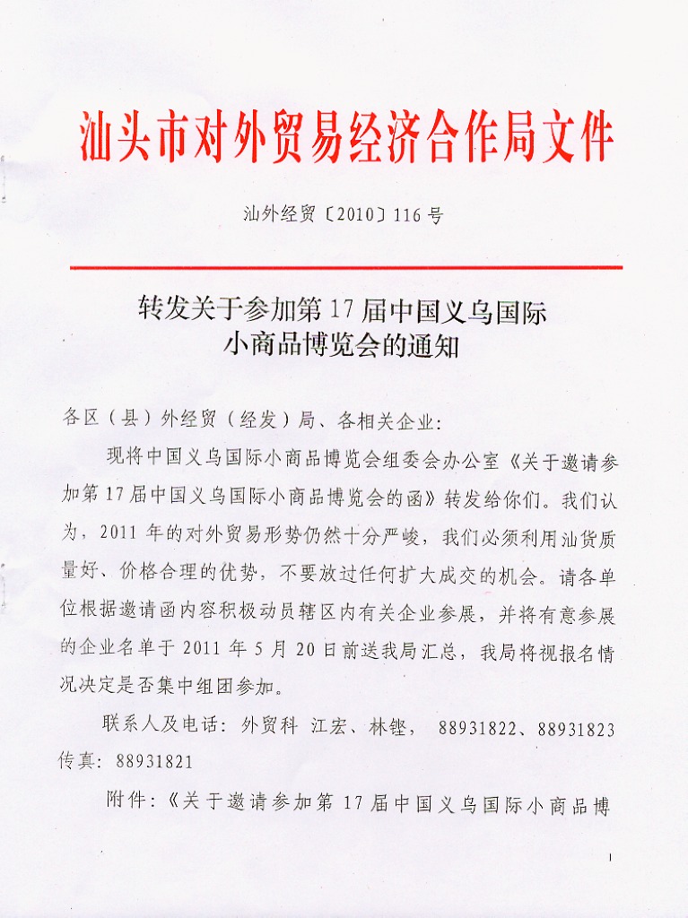 汕外经贸[2010]116号《转发关于参加第17届中国义乌国际小商品博览会的通知》