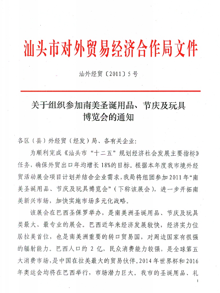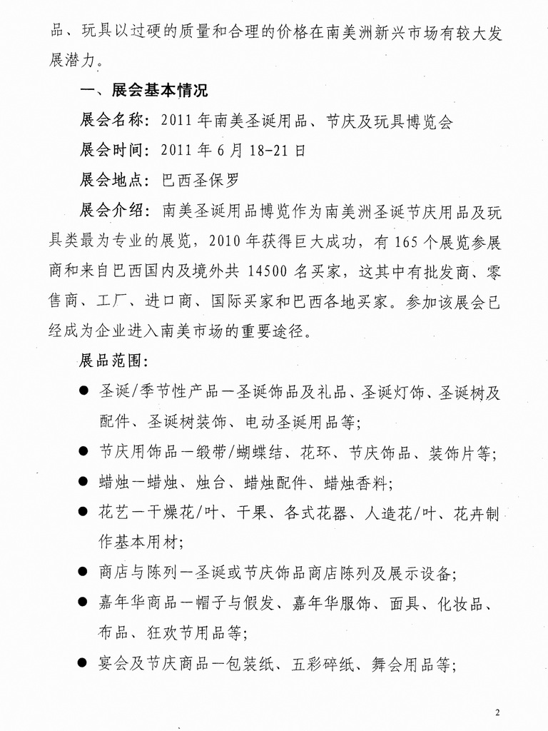 关于组织参加南美圣诞用品、节庆及玩具博览会的通知