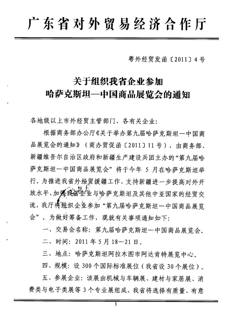 转发《关于组织我省企业参加哈萨克斯坦——中国商品展览会的通知》