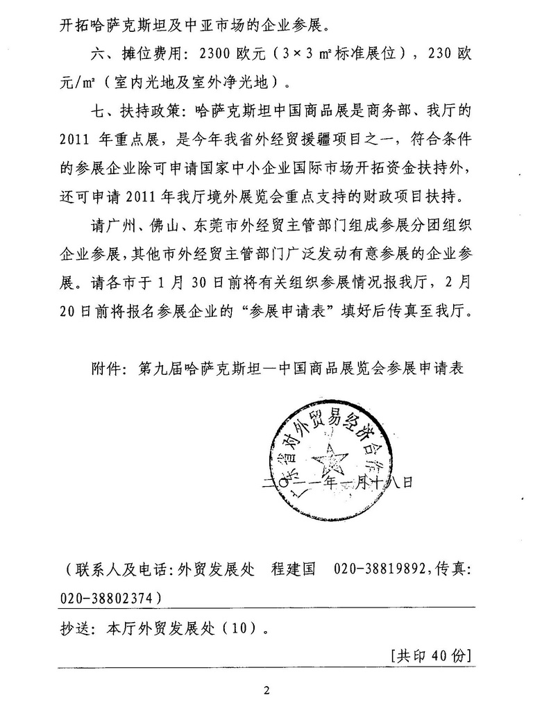 点击次数:2265    发布时间:2011-01-24  附件:第九届哈萨克斯坦——中国商品展览会参展申请表.doc