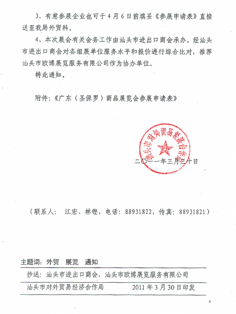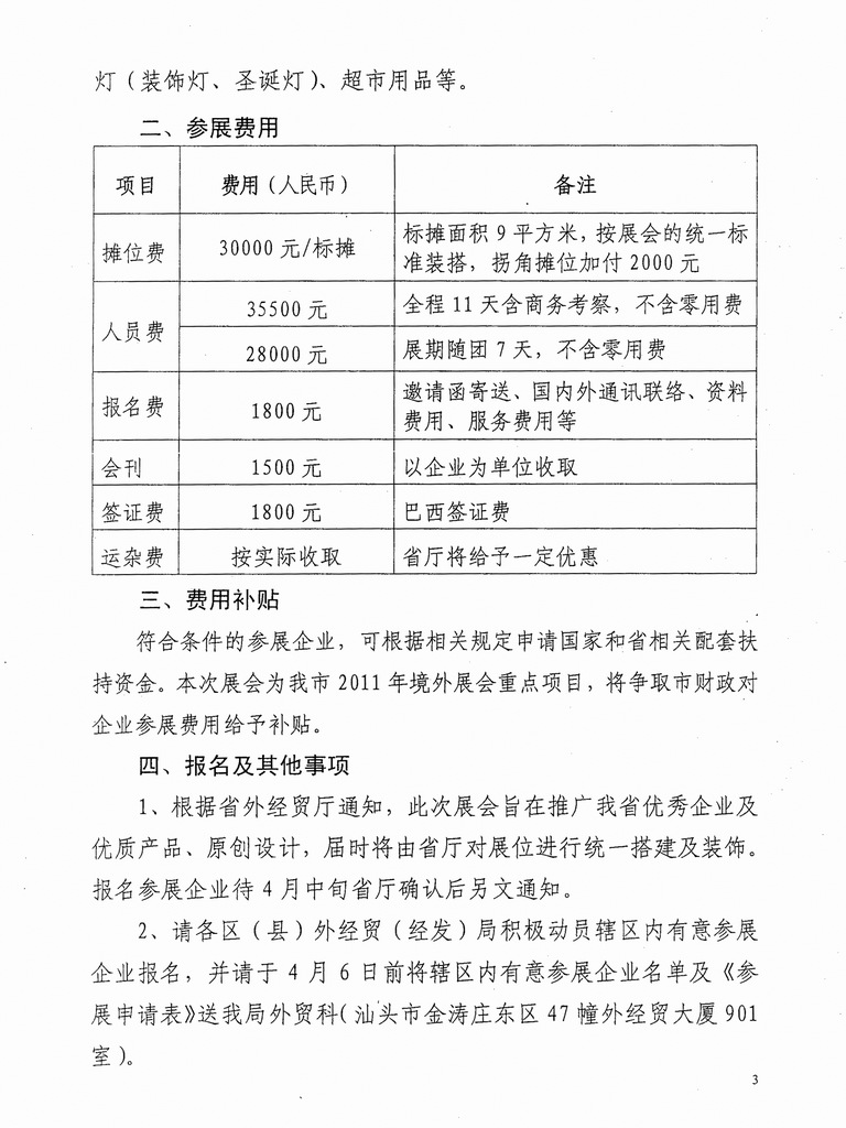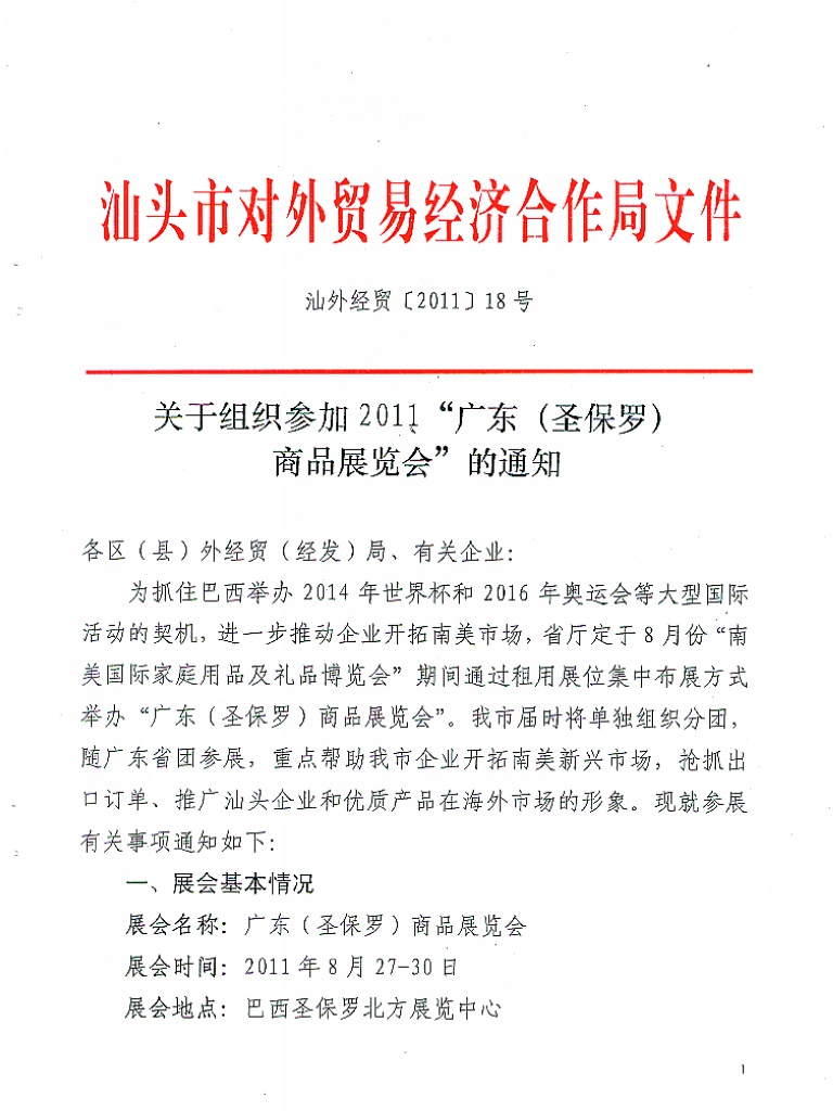 关于组织参加2011“广东(圣保罗)商品展览会”的通知
