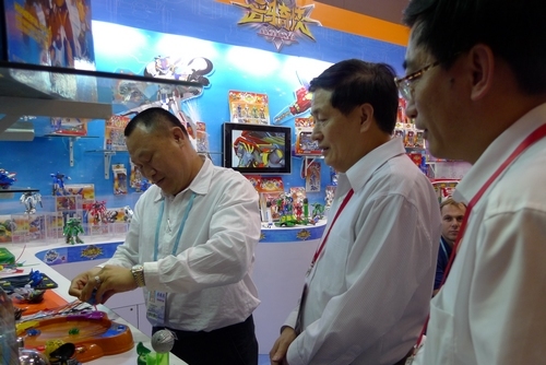 在玩具展区的广东骅威玩具工艺股份有限公司、广东星辉车模股份有限公司、广东银润实业有限公司展位,蔡宗泽市长仔细了解企业在产品研发、人才培养、贸易成交等方面的情况。在得知我市玩具产业目前在国内外颇有名气,不少境外采购商慕名而来后,蔡市长鼓励大家要抓住后经济危机时期全球经济回升的重要机遇,加大自主研发,加快转型升级,把拳头产品做强、把产业规模做大,打响“汕货”品牌,力推产业进一步升级。