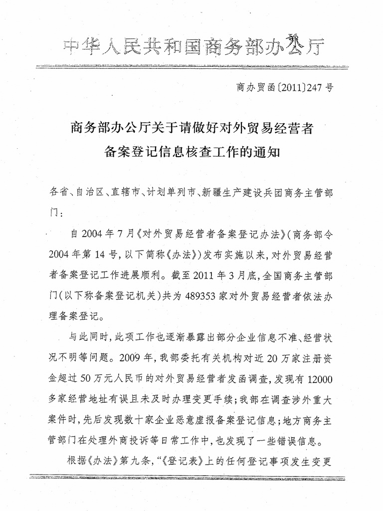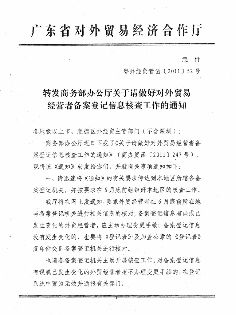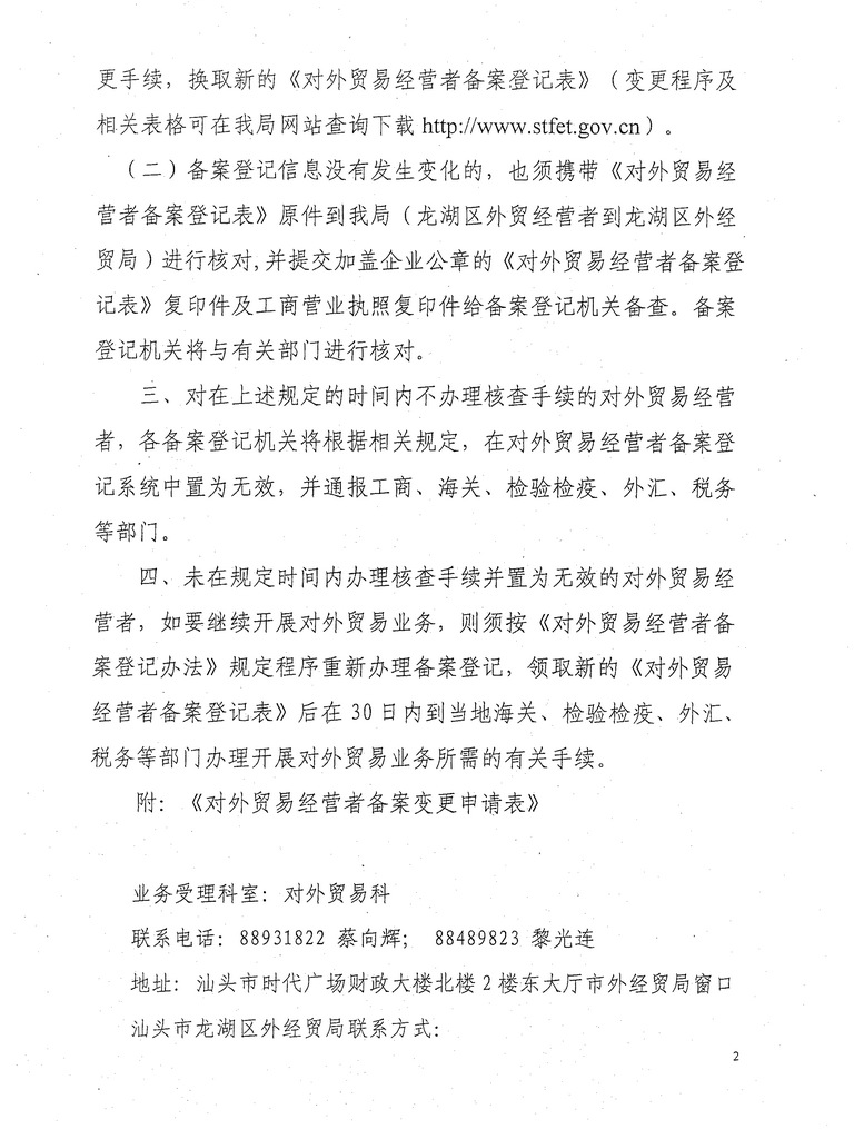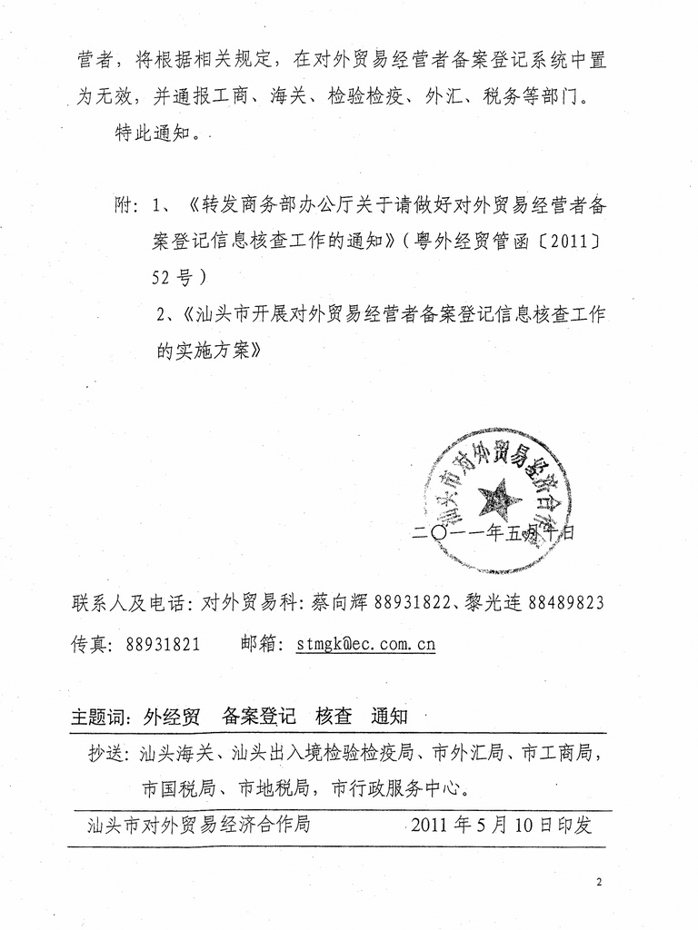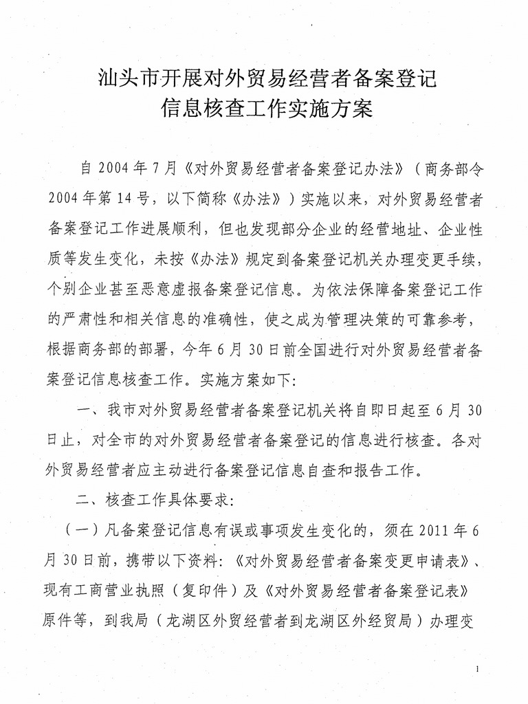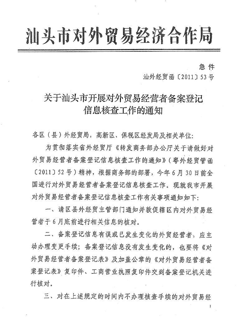 关于汕头市开展对外贸易经营者备案登记信息核查工作的通知