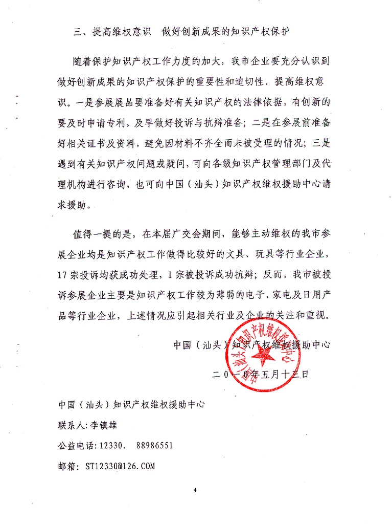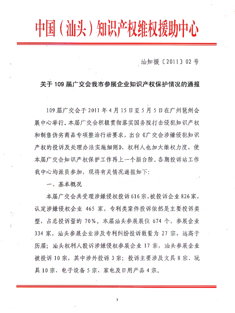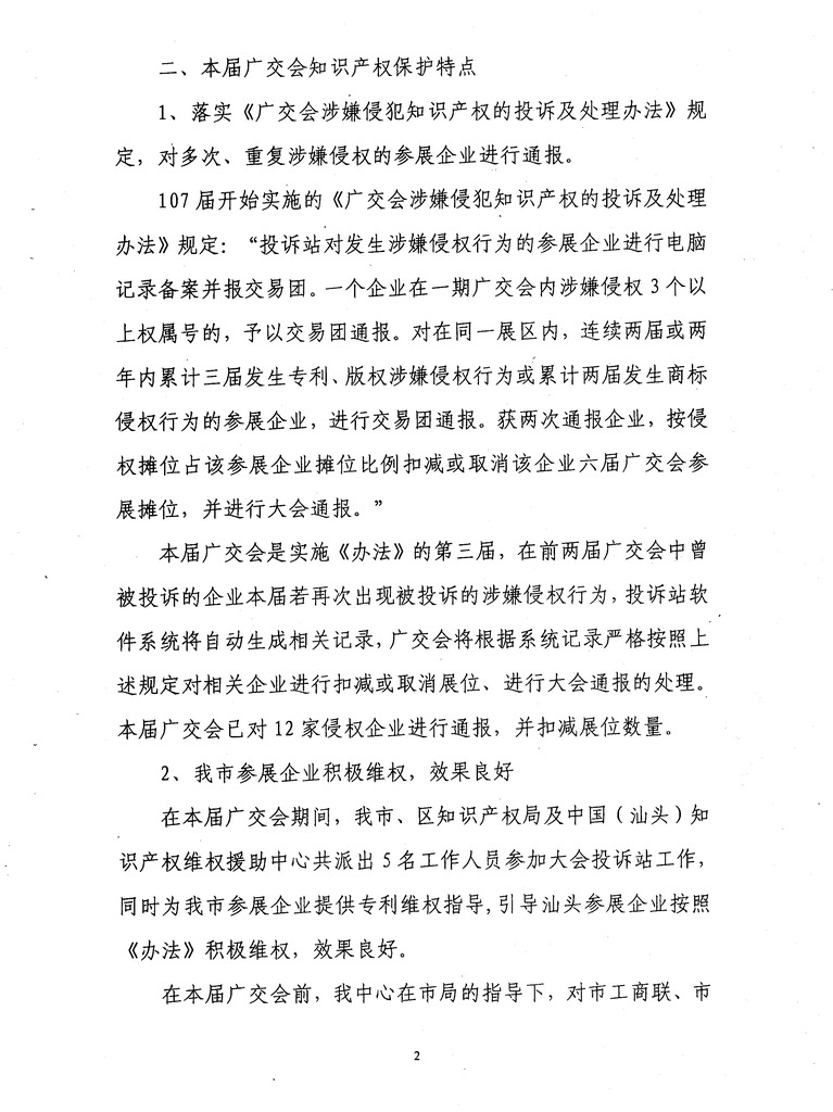 关于109届广交会我市参展企业知识产权保护情况的通报