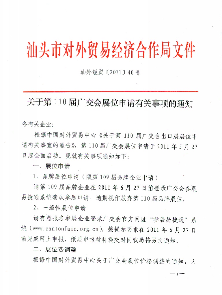 点击次数:2602    发布时间:2011-06-01  附件:1、广交会网上申请展位流程;2、广交会展位申请操作说明.rar