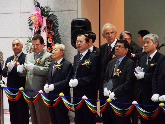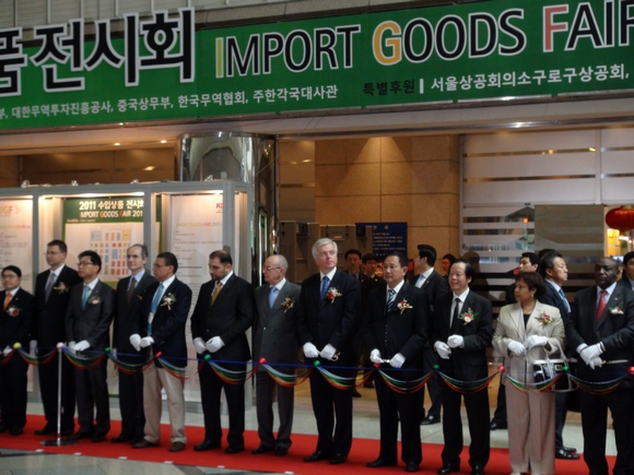 汕头市进出口商会会长刘漳荣出席2011韩国进口商品展开幕式并参加剪彩仪式