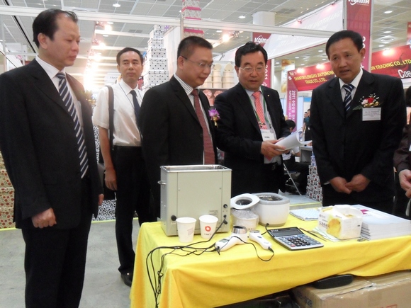 韩国进口业协会常务副会长高光奭参观汕头参展企业摊位、详细了解汕头出口产品