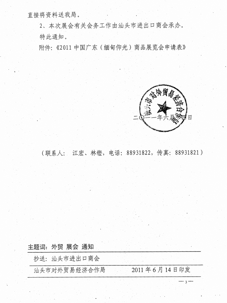 关于组织企业参加2011中国广东(缅甸仰光)商品展览会的通知