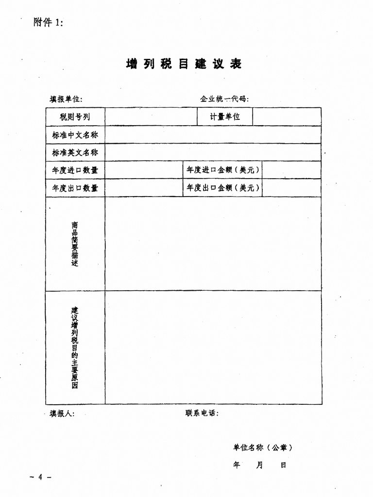点击次数:2606    发布时间:2011-07-14  附件:1、增列税目建议表;2、调整进(出)口暂定税率建议表.rar