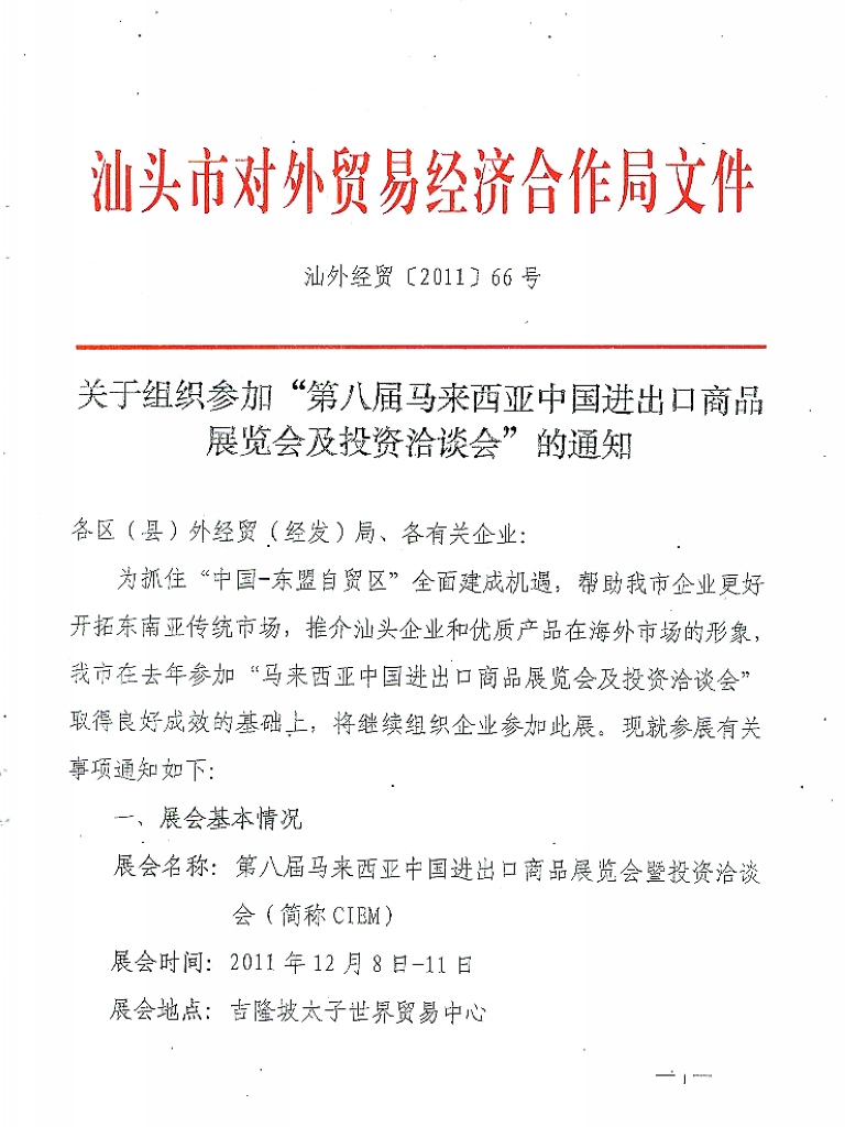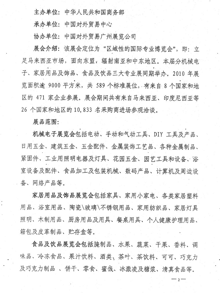 关于组织参加“第八届马来西亚中国进出口商品展览会及投资洽谈会”的通知