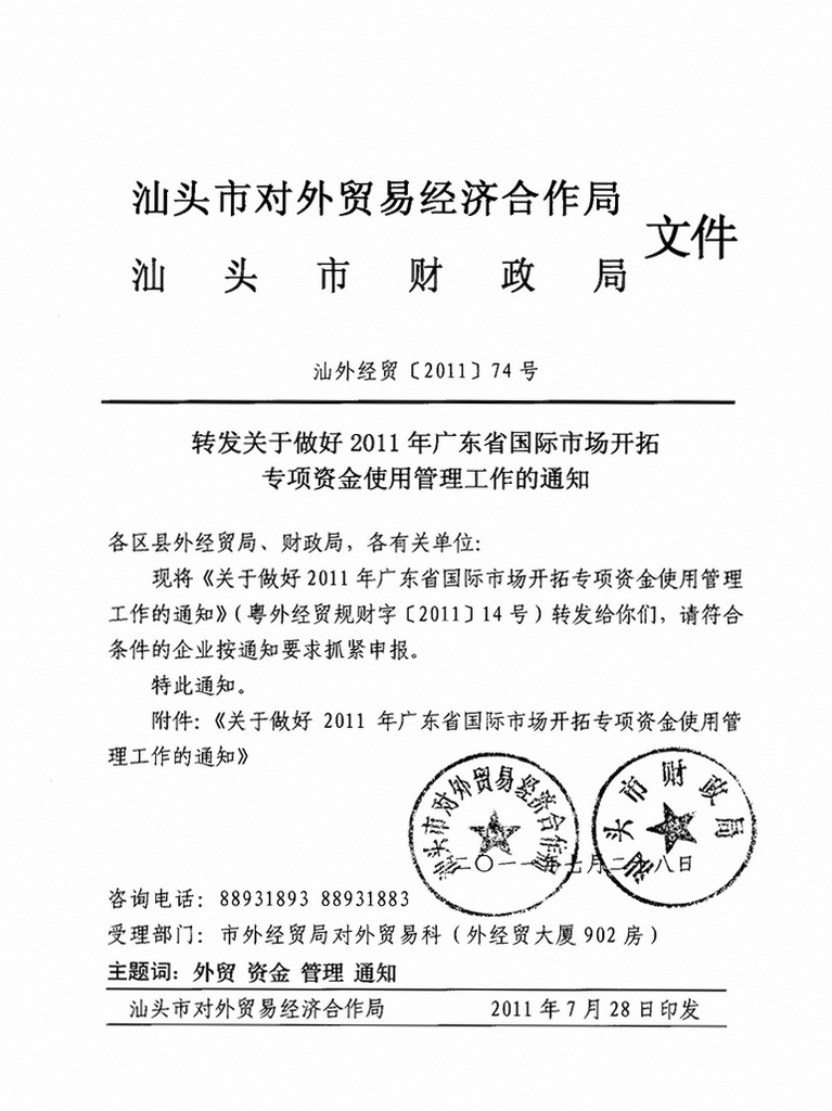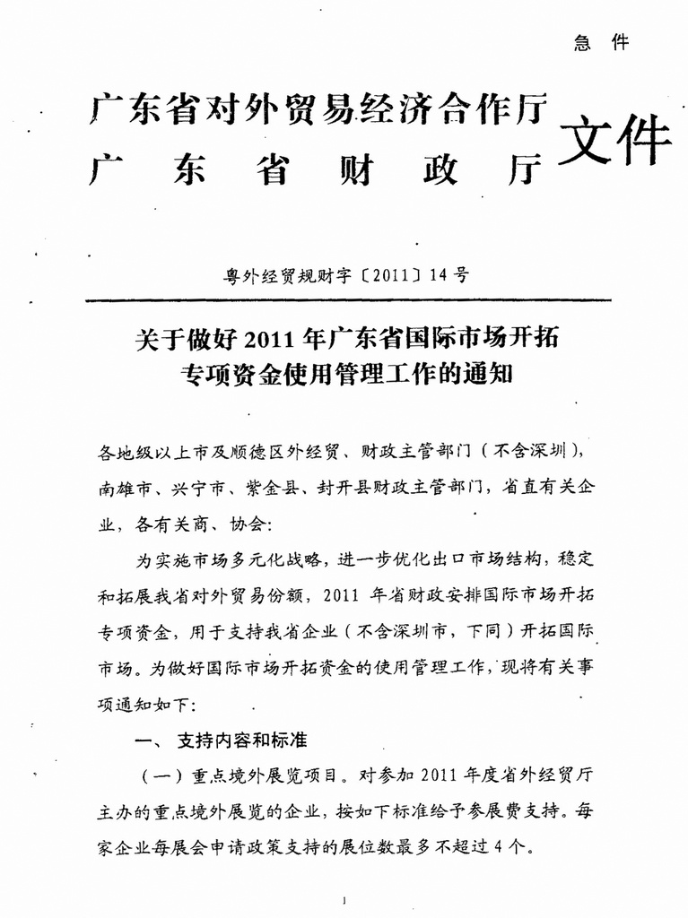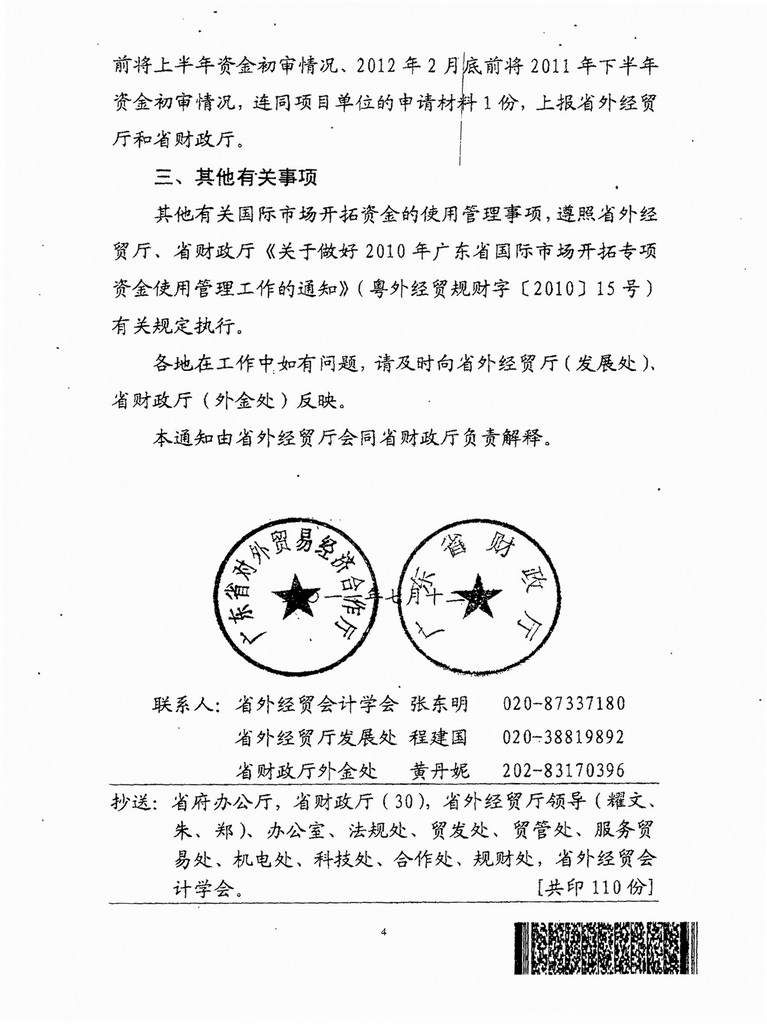 转发关于做好2011年广东省国际市场开拓专项资金使用管理工作的通知