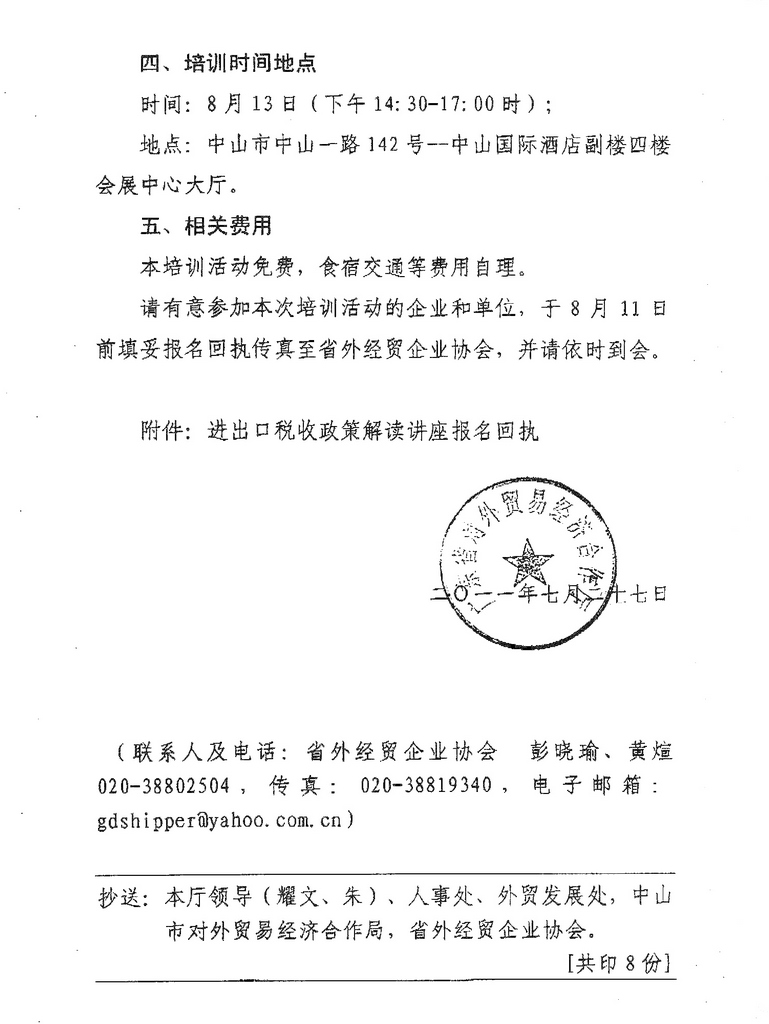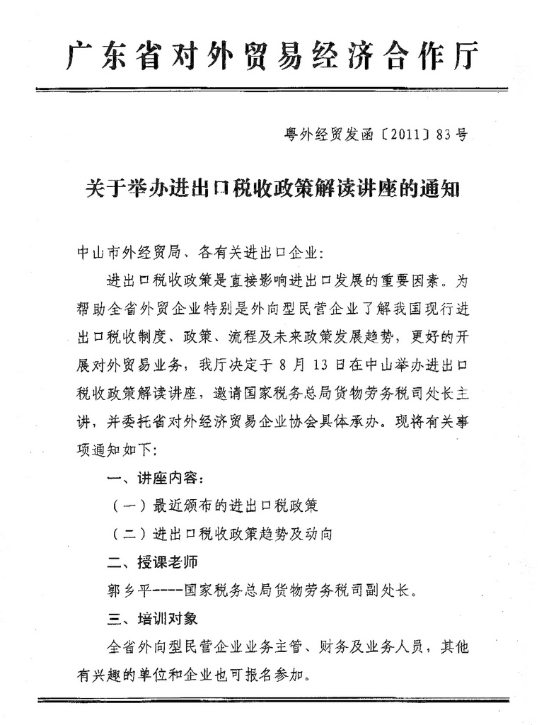 转发广东省外经贸厅关于举办进出口税收政策解读讲座的通知
