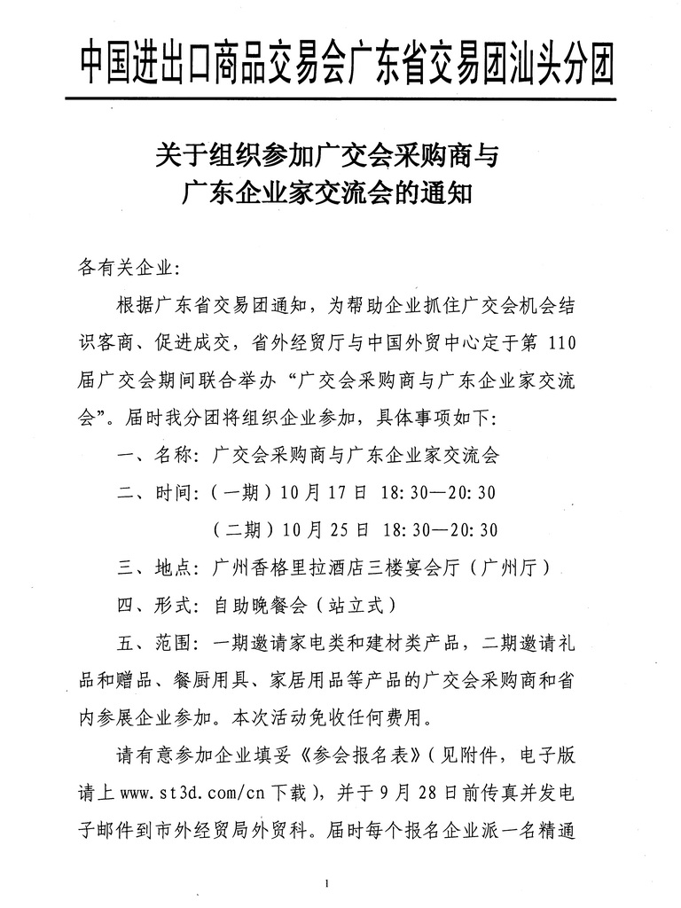 关于组织参加广交会采购商与广东企业家交流会的通知