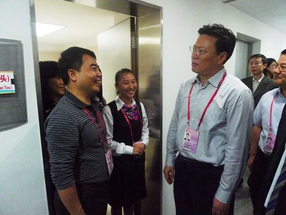 商务部部长助理俞建华在广交会副主任兼秘书长王志平、广交会副主任文仲亮、广交会副秘书长刘建军、大会政工办主任燕毅、大会政工办常务副主任任志坚以及轻工商会和食土商会的负责人等陪同下视察汕头交易团团部。