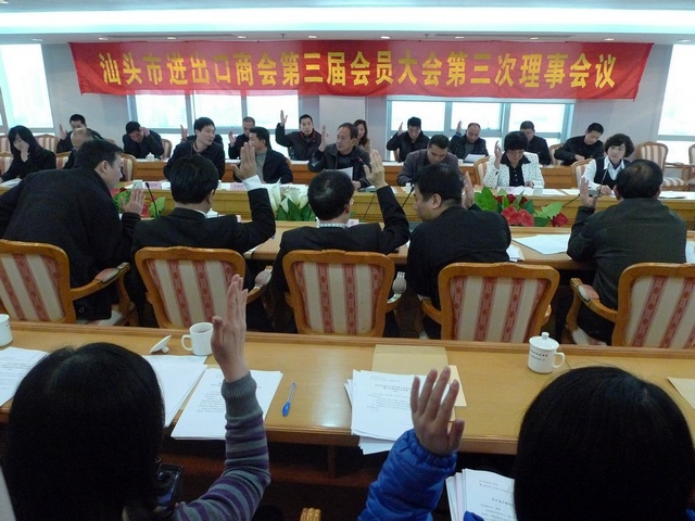 2012年1月10日下午4点,我会在市外经贸局12楼会议室举行了第三届会员大会第三次理事会议。本次应出席理事代表53人,实际到会代表39人,符合《章程》规定,会议有效。