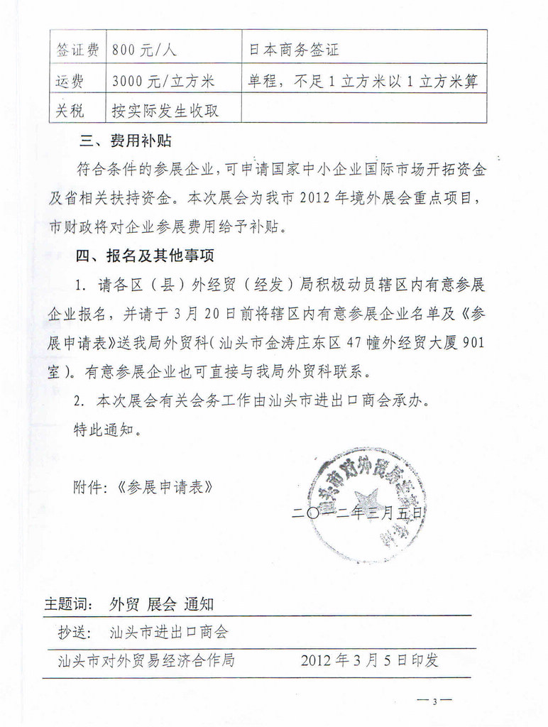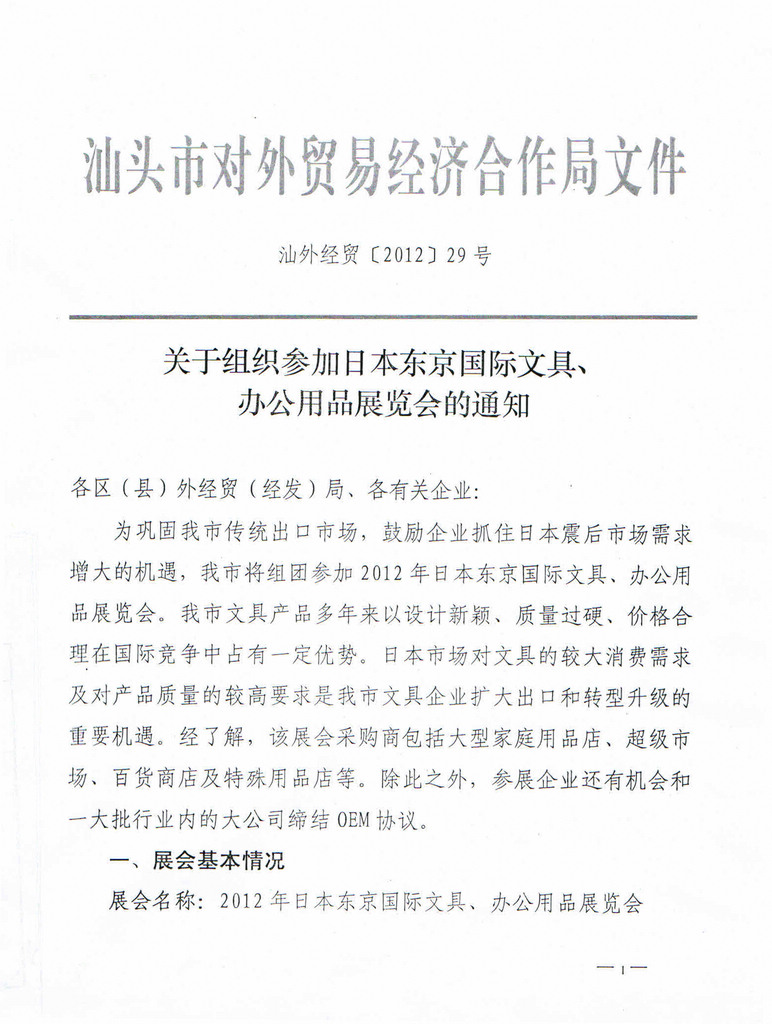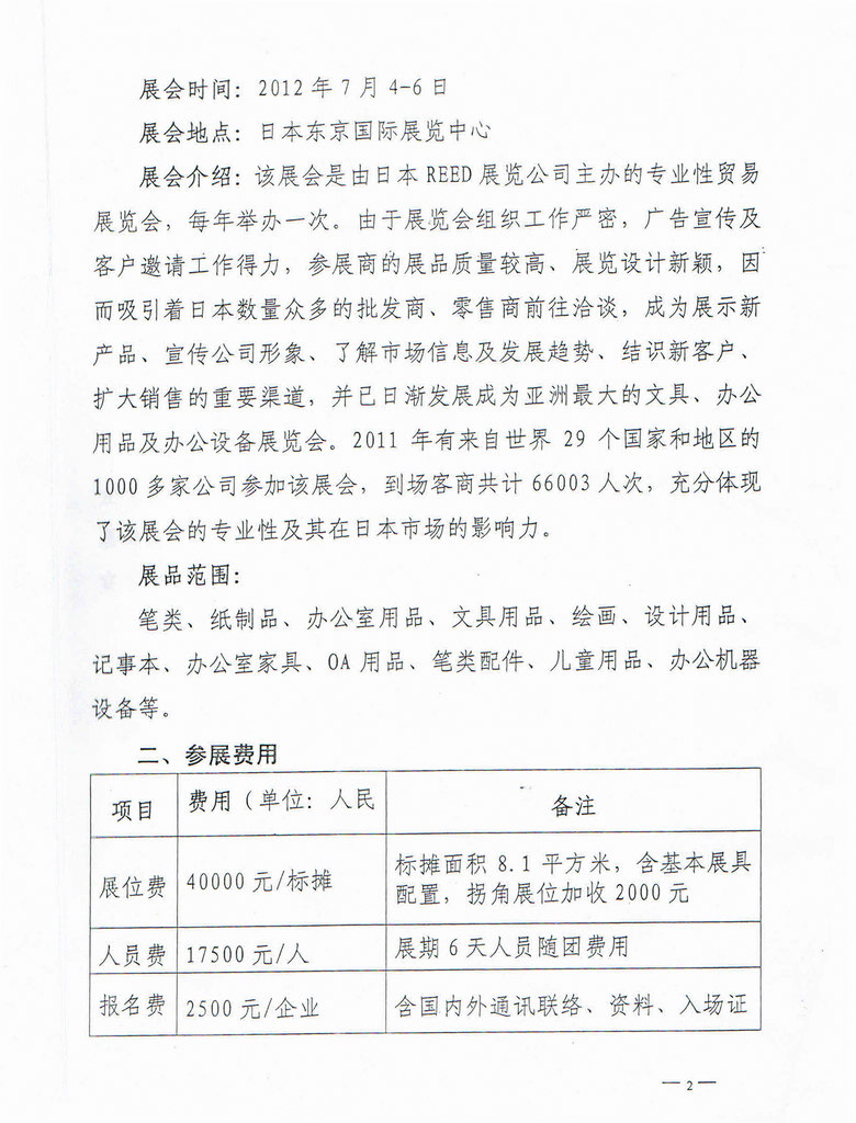 关于组织参加日本东京国际文具、办公用品展览会的通知