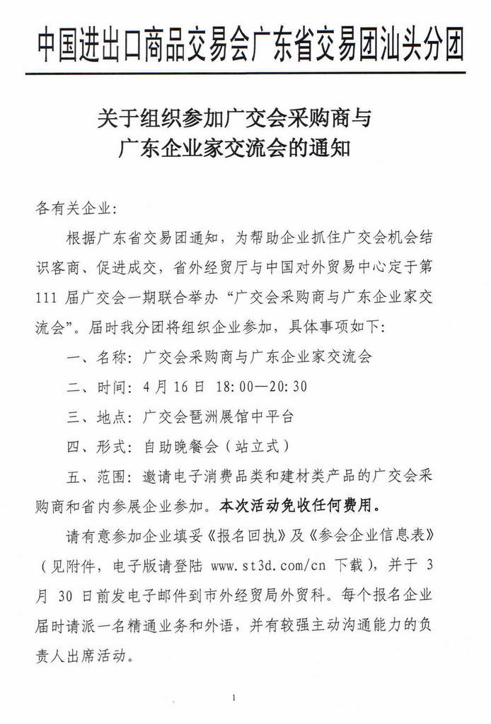 关于组织参加广交会采购商与广东企业家交流会的通知