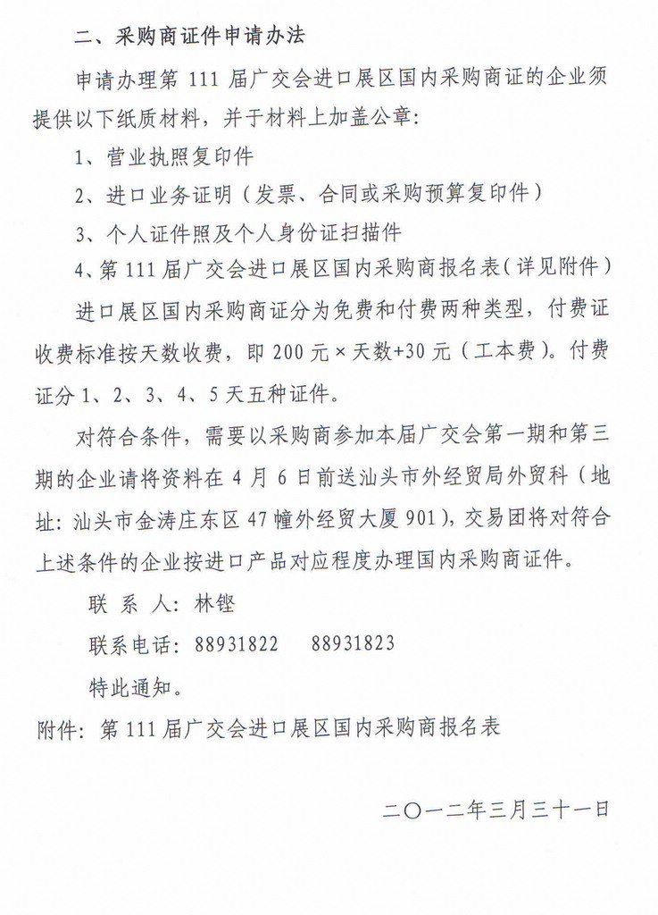 关于第111届广交会进口展区国内采购商报名有关事宜的通知