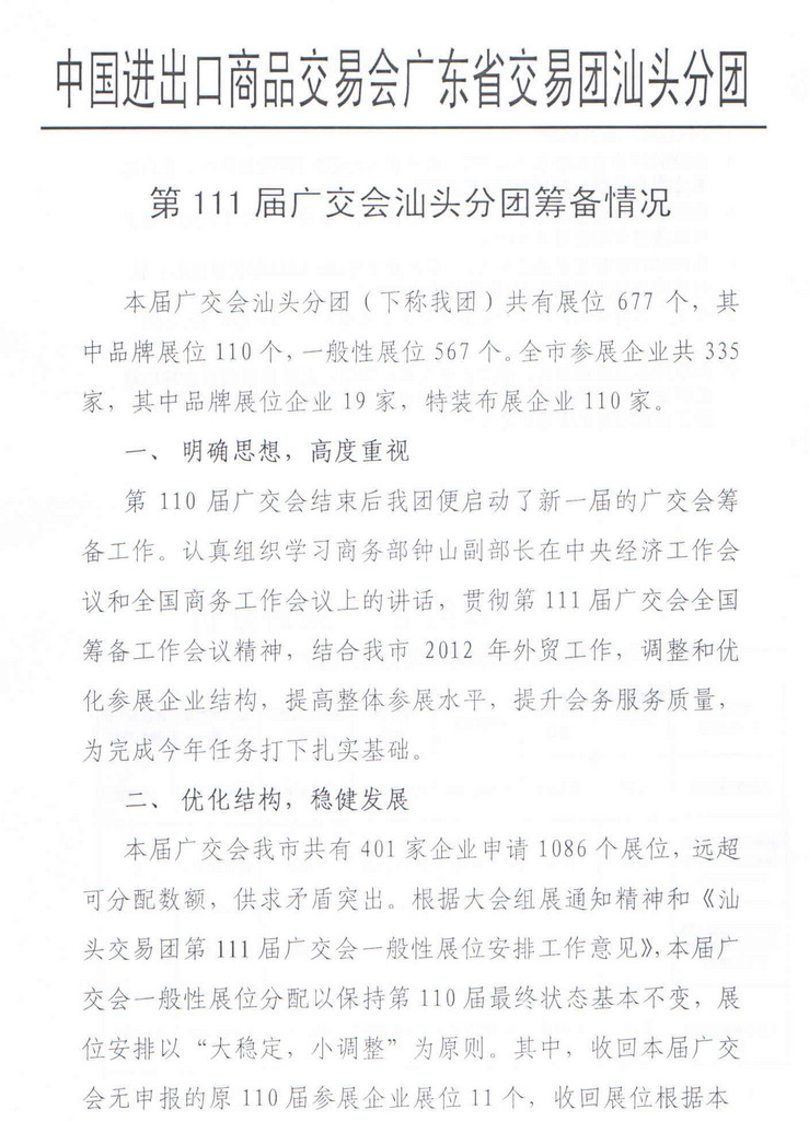 第111届广交会汕头分团筹备情况