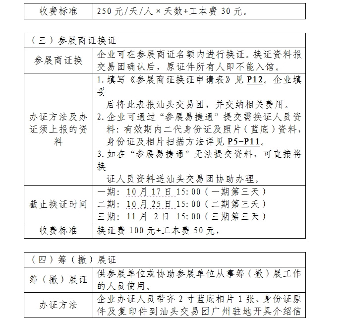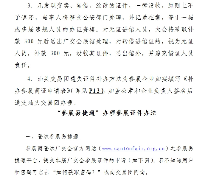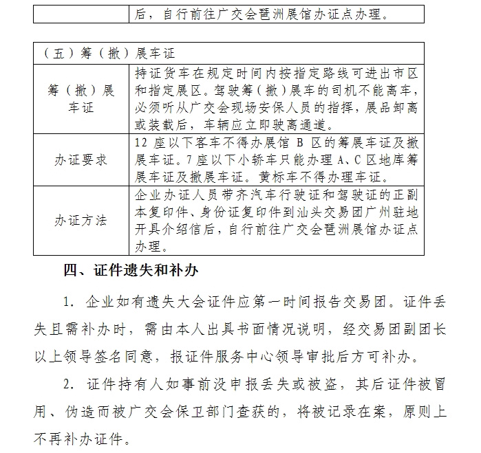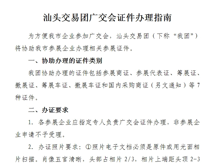《汕头交易团广交会证件办理指南》下载《广交会参展商换证、补证申请表》下载