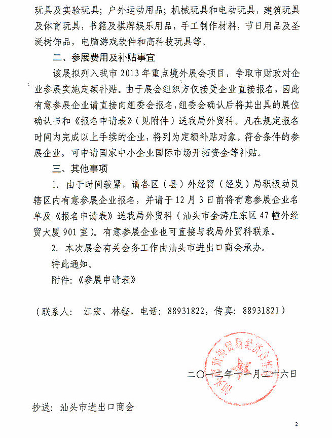 《2013德国纽伦堡国际玩具博览会报名表》