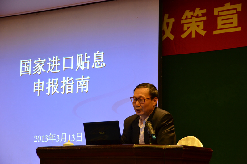 宣传会上市外经贸局刘文华副局长就2012年全市进出口情况做了简要回顾并对2013年外贸环境做了前瞻。宣讲会特邀汕头海关关税处副调研员兼减免税科肖天峻科长介绍进口减免税政策。市外经贸局机电和科技贸易科冯扬科长向广大企业通报了我市去年申报国家和省进口贴息资金情况,讲解了国家进口贴息、市促进进口专项资金申报指南及注意事项等,帮助企业及时了解相关信息,积极促进进口发展。