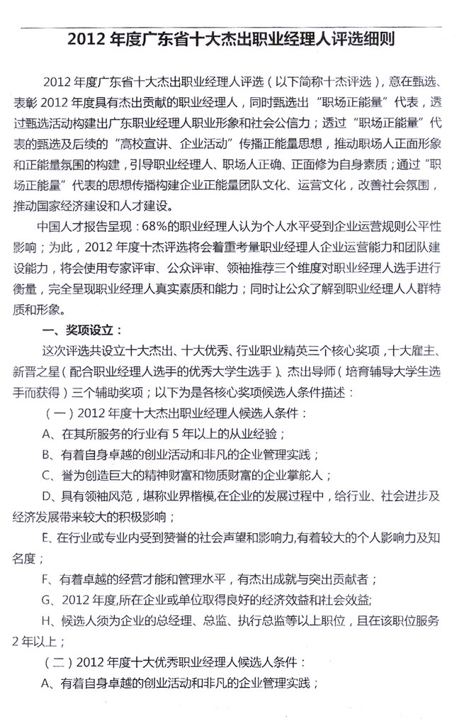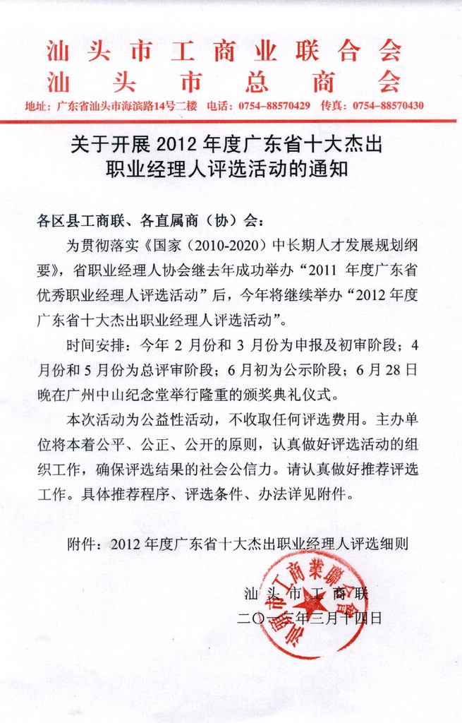 转发市工商联“关于开展2012年度广东省十大杰出职业经理人评选活动的通知”