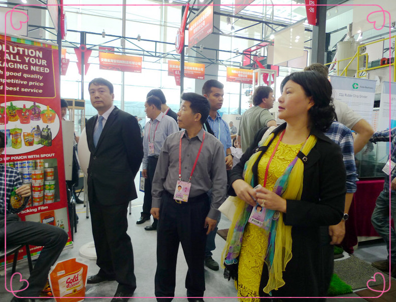 汕头市新华包装机械厂有限公司参展人员正在调试展品