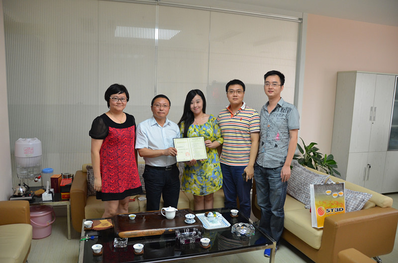 秘书处工作人员向斯孝正执行总裁颁发商会会员证书