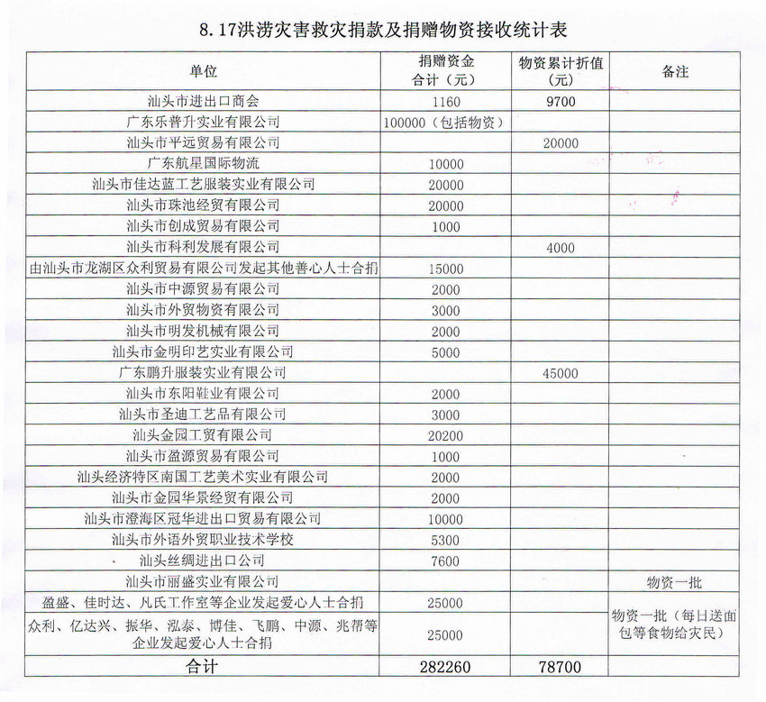 截至26日下午,商会会员企业为灾区捐赠的善款累计282260元,捐赠物资市值累计约78700元,以实际行动支援灾区抗灾复产,具体捐赠如下: