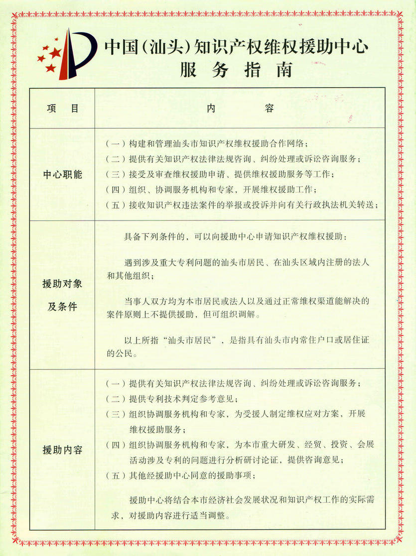 中国(汕头)知识产权维权援助中心服务指南