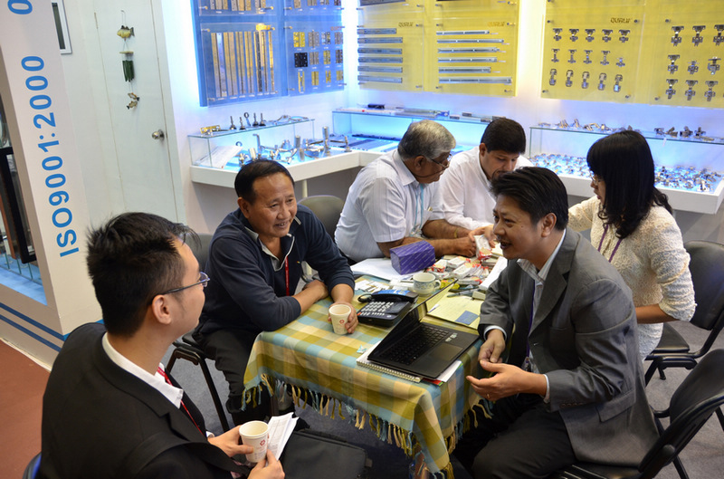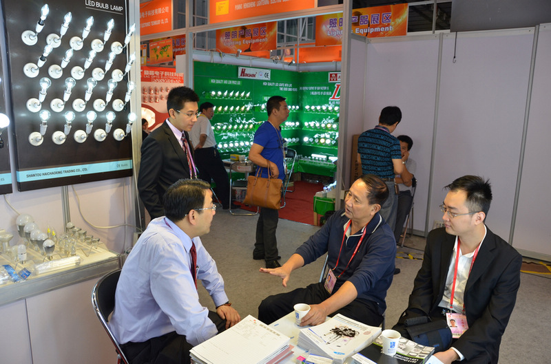 汕头市宜家贸易有限公司陈雄勇副会长与外商在展位洽谈中