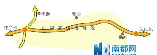 记者获悉,以从广州去汕头为例,目前自驾车一般是往东走上广惠高速,到凌坑收费站后转深汕高速,再一直走到汕头,全程接近5小时左右;但未来揭博高速通车后,全程将只需大约4小时,且可比原来线路少走约