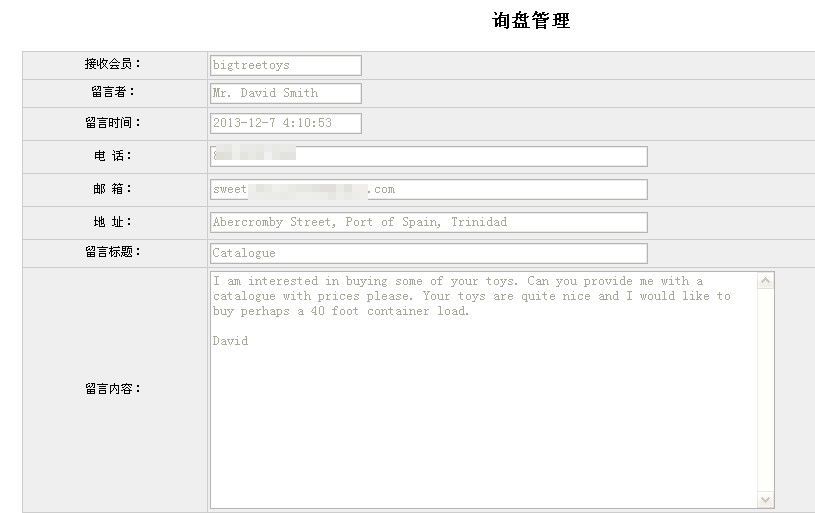 近日来,有来自中美洲的特立尼达(Trinidad)采购商以及来自巴基斯坦(Pakistan)采购商分别留言,对网站展示产品颇感兴趣,并希望与商会常务理事单位汕头市大树玩具有限公司(以下简称“大树公司”)、商会会员单位汕头市金平区永泰塑胶实业有限公司(以下简称“永泰公司”)进一步洽谈。