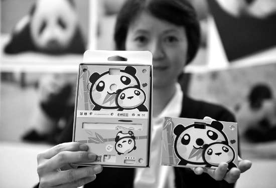 12月9日,一位厂商代表展示他们设计的有熊猫形象的数码相机。当日,台北市政府产业发展局在台北召开发布会,对外公布大陆赠台大熊猫“团团”“圆圆”的第一胎宝宝“圆仔”专用图案即日起开放申请营利使用权。一些厂商在发布会上展示自己设计的“圆仔”产品,包括“圆仔”公仔、印有“圆仔”图案的雨伞、文具、(公交)悠游卡、数码相机等。但要想注册为“圆仔”授权商品,还需向台北市政府提出申请,等待审核。 (新华社发)