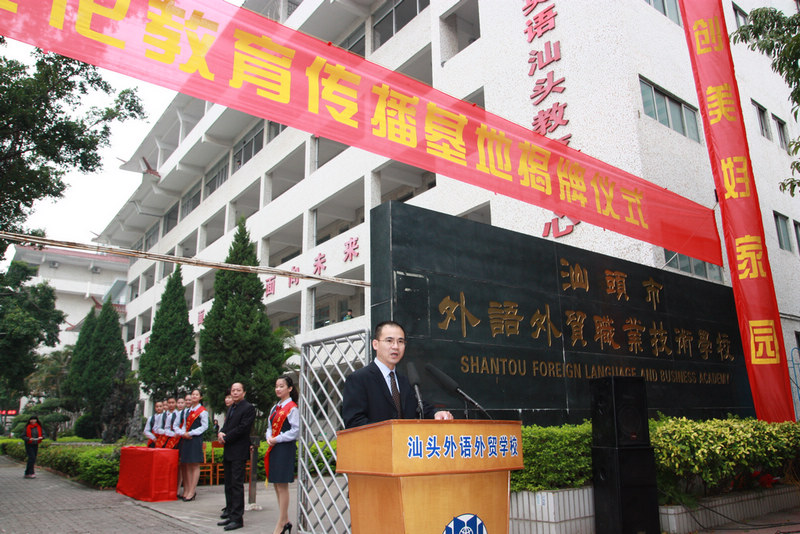 汕头市外语外贸职业技术学校是一所具有外经贸特色的优秀学校,学校高度重视校园文化建设,重视潮汕文化价值的挖掘,在致力于专业知识技能培养的同时,注重以浓厚的文化氛围来感染培育学生,用优秀的文化向学生传递正能量,提升学生的职业素养,培养适应现代企业发展需要的技能型人才。此次传播基地的设立,学校将借助这个平台,结合学校的专业教学特点,围绕潮商和侨批两个亮点开展相关教育实践活动,创新职业素养教育模式,在全校师生中掀起学习、了解和弘扬潮汕文化的热潮,弘扬潮商艰苦创业、诚实守信、热爱家乡、奉献社会的精神,为实现中国梦,建设幸福潮汕家园而努力。