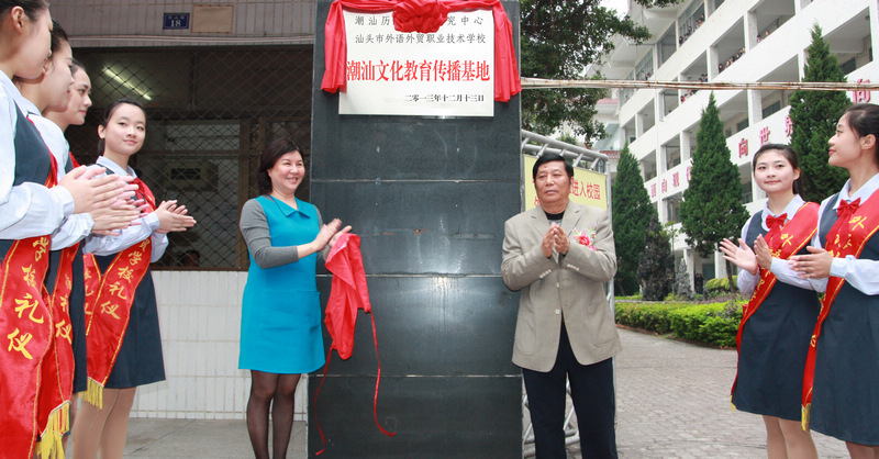 为发挥职业教育教学特色,探索校园文化建设新路子,用优秀的潮汕文化熏陶培养学生,加强爱国主义教育,提升学校职业素养教学水平,汕头市外语外贸职业技术学校和潮汕历史文化研究中心联合设立“潮汕文化教育传播基地”并在