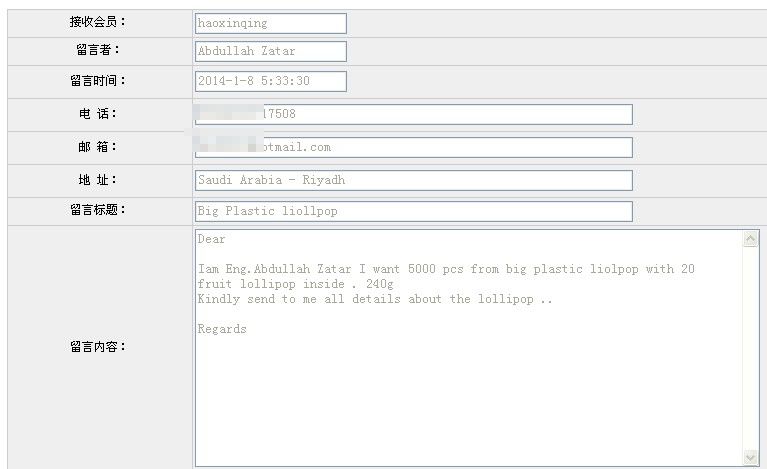 元月8日,商会工作人员接到沙特采购商Abdullah Zatar在ST3D网站上向会员企业广东好心情食品集团有限公司询盘。客商求购棒棒糖,水果口味,数量5000箱,希望供应商能进一步联系。工作人员第一时间与好心情公司业务负责人江斌经理取得联系,告知客商的求购意向及联系方式,