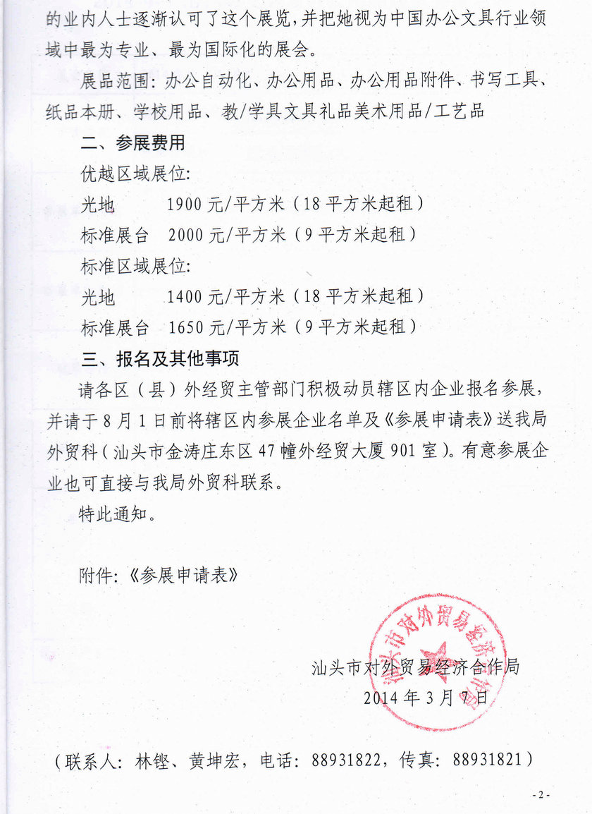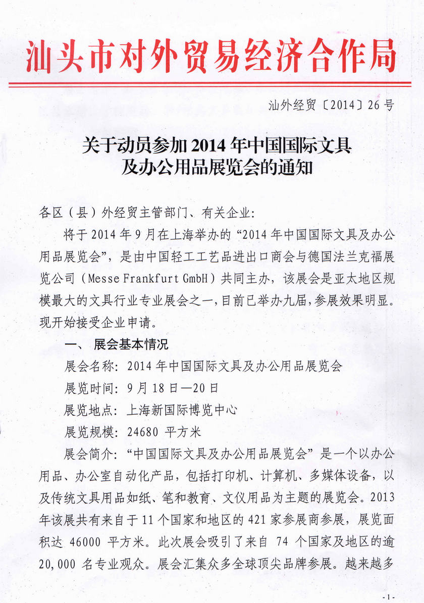 关于动员参加2014年中国国际文具及办公用品展览会的通知