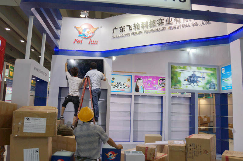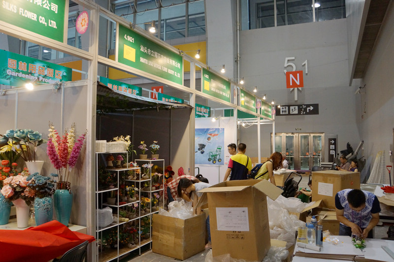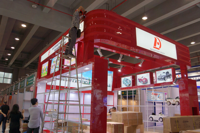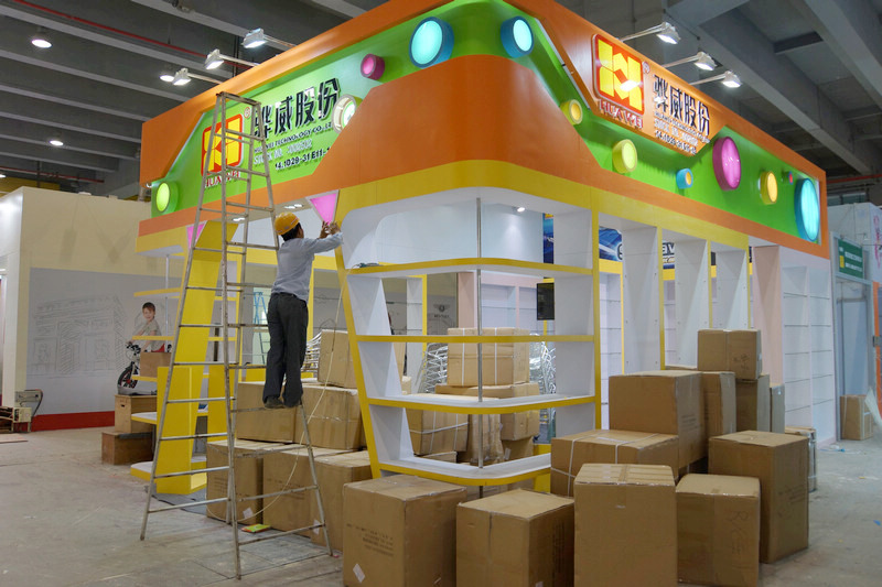 4月22日,第115届广交会汕头分团第二期各参展企业正在争分夺秒进行装修布展。